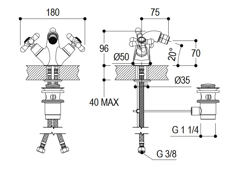 Ritmonio Ritro Bateria bidetowa 1-otworowa chrom PR42044CRL