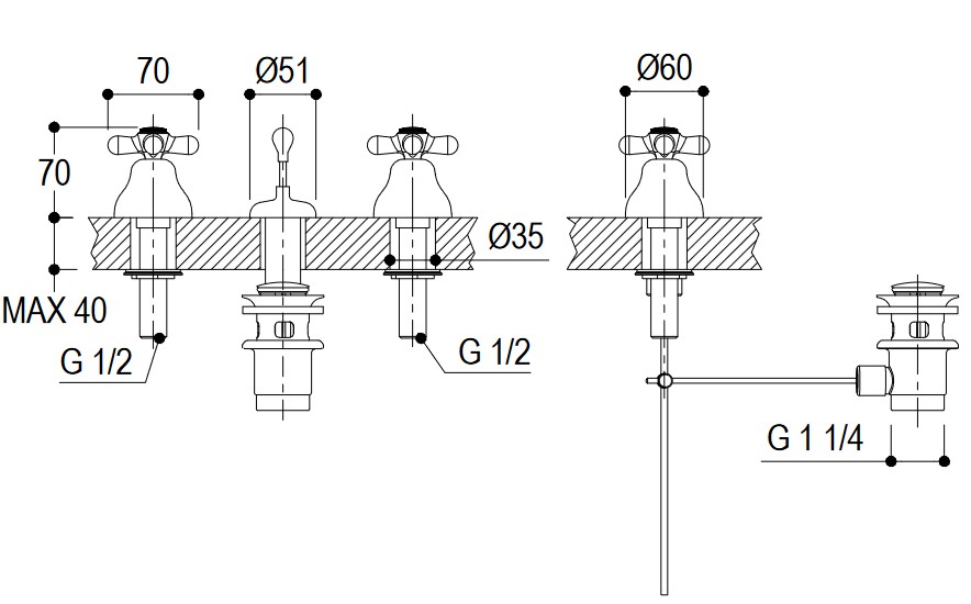 Ritmonio Ritro Bateria bidetowa 3-otworowa bez wylewki chrom PR42022CRL