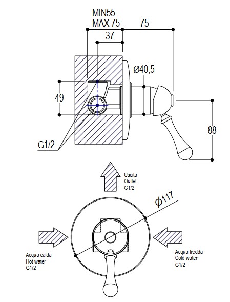 Ritmonio Mieszacz prysznicowy ścienny chrom PR426430CRL