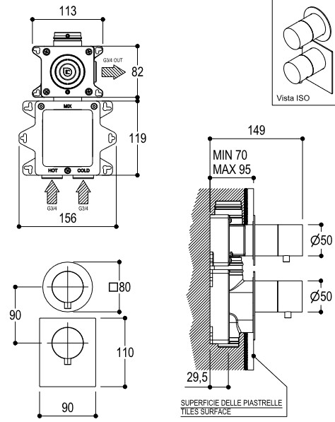 Ritmonio Bateria wannowo-prysznicowa termostatyczna podtynkowa chrom PR47HC201CRL