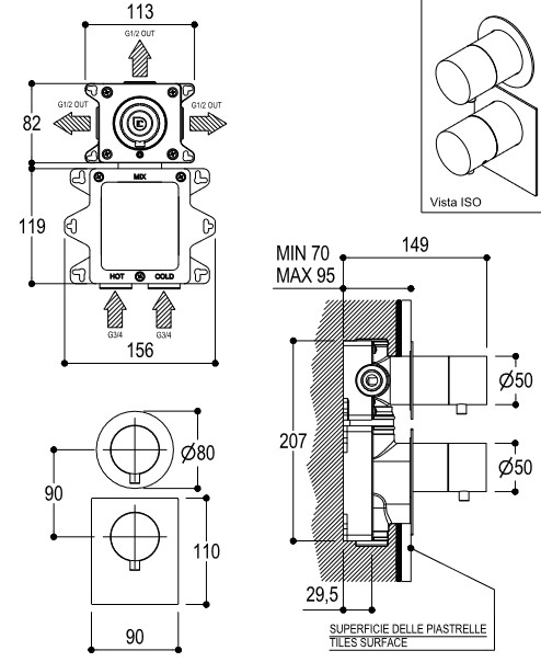 Ritmonio Bateria wannowo-prysznicowa termostatyczna podtynkowa chrom PR47HG202CRL