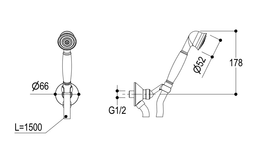 Zestaw składa się ze słuchawki, węża 1500 mm, uchwytu i kolanka wypływu.