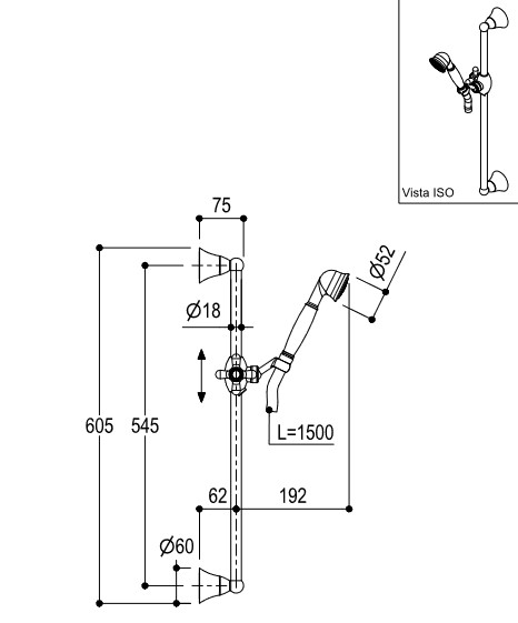 Ritmonio Drążek prysznicowy ze słuchawką i wężem chrom PR4219256CRL
