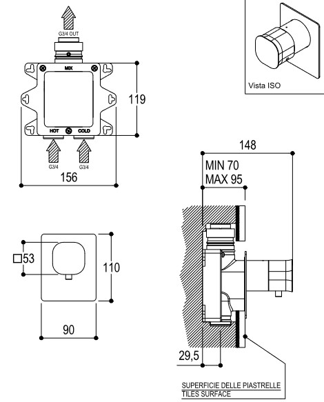 Wymiary: Szerokość: 90 mmWysokość: 110 mmDługość: 148 mmCena dotyczy baterii z elementem podtynkowym