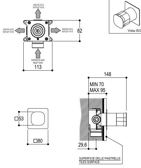 Wymiary: Szerokość: 80 mmWysokość: 80 mmDługość: 148 mmCena dotyczy baterii z elementem podtynkowym
