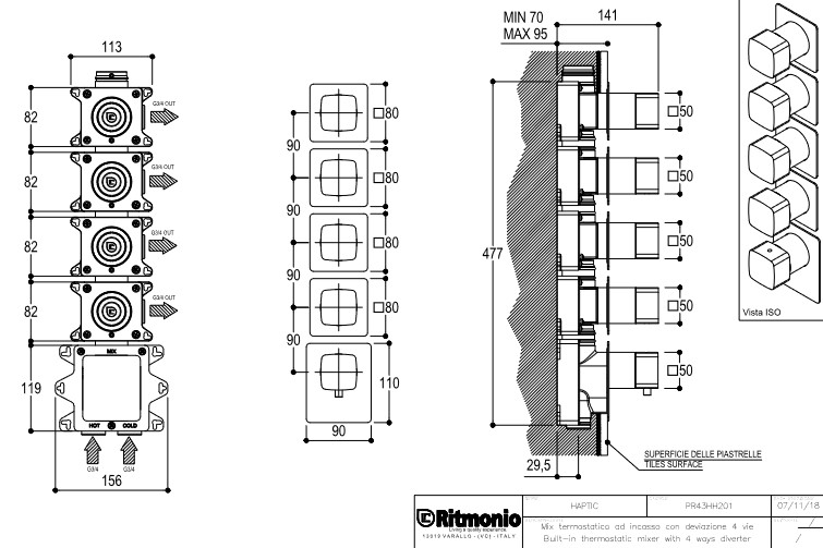 Ritmonio Haptic Bateria natryskowa podtynkowa termostatyczna chrom PR43HJ201CRL