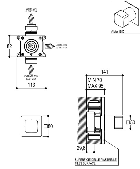 1 wylot boczny sterowany śrubą ceramiczną z pozycją zatrzymania i regulacją przepływu