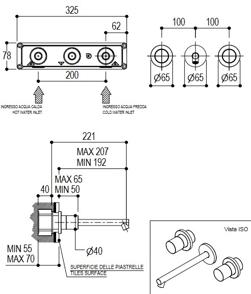Ritmonio Diametro35 Bateria umywalkowa ścienna podtynkowa chrom E0BA0204SPCRL