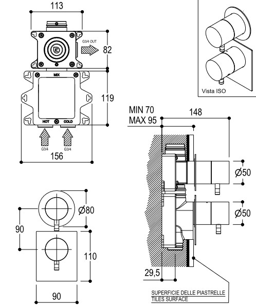 Ritmonio Bateria wannowo-prysznicowa termostatyczna podtynkowa chrom E0BA0178ESPCRL