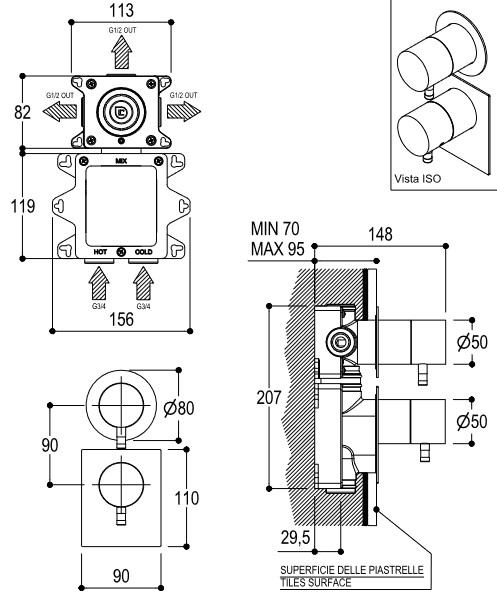 Ritmonio Bateria wannowo-prysznicowa termostatyczna podtynkowa chrom E0BA0179ESPCRL
