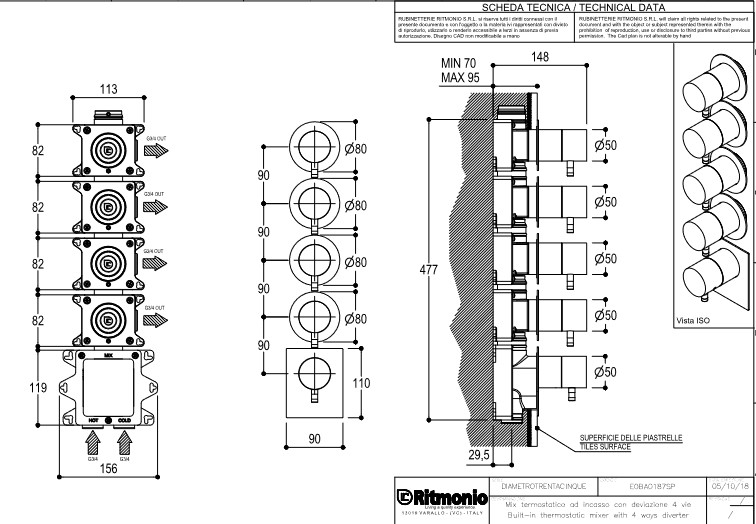 Ritmonio Bateria wannowo-prysznicowa termostatyczna podtynkowa chrom E0BA0187ESPCRL