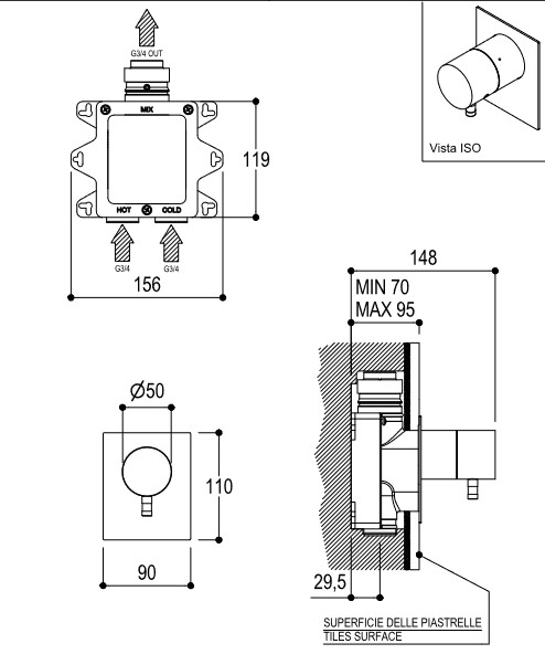 Ritmonio Bateria wannowo-prysznicowa termostatyczna podtynkowa chrom E0BA0183ECRL