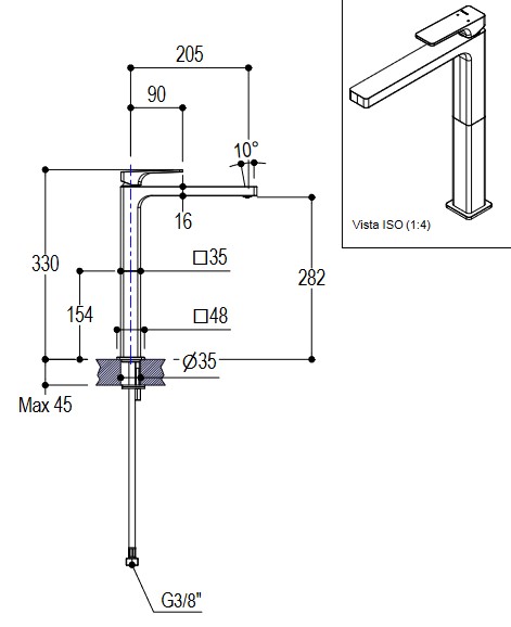 Długość wylewki: 330 mm