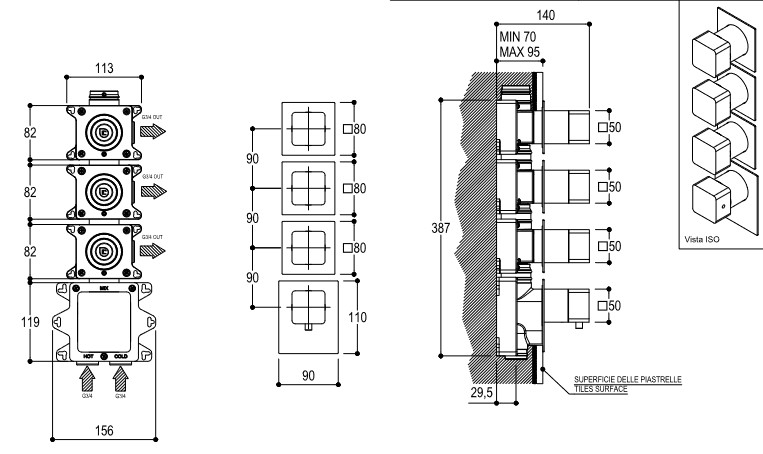 Bateria z elementem podtynkowym w komplecie.