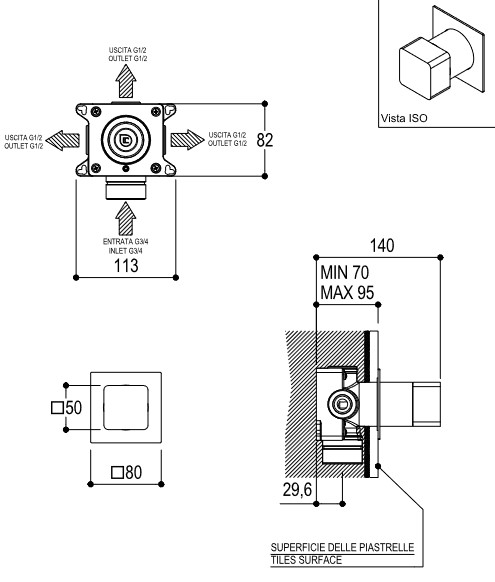 Ritmonio Przełącznik 3-drożny z regulacją przepływu podtynkowy chrom PR47LB211CRL