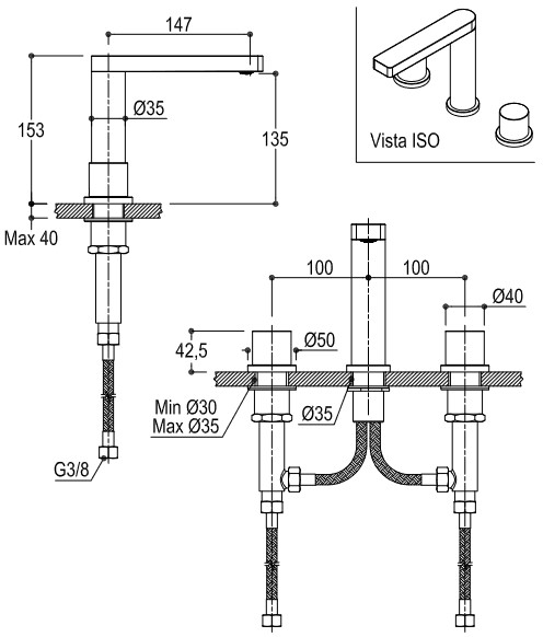 • Montaż: 3-otworowy