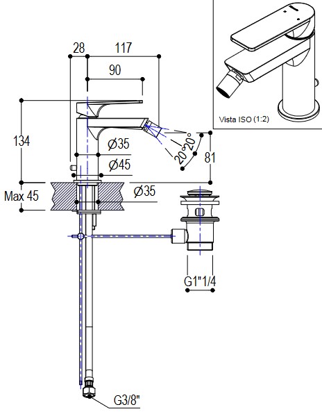 Ritmonio Pois Bateria bidetowa jednootworowa z korkiem automatycznym chrom PR31BA101CRL