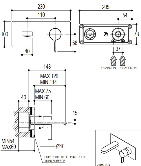 Ritmonio Tie Bateria umywalkowa ścienna podtynkowa chrom PR34AL101CRL