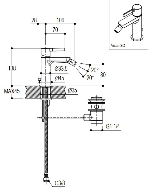 Ritmonio Tie Bateria bidetowa jednootworowa z korkiem automatycznym chrom PR34BA101CRL