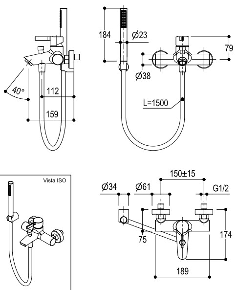Ritmonio Tie Bateria wannowa z słuchawką chrom PR34EH201CRL