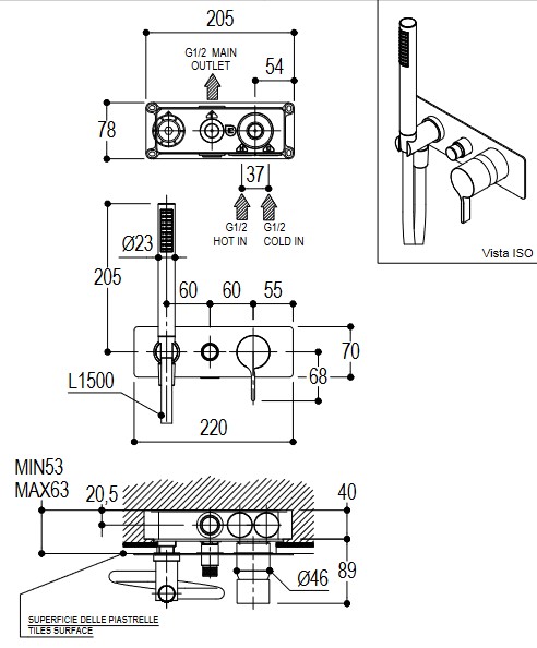 Wymiary: Długość węża: 1500 mmWysokość: 70 mmSłuchawka: 205 mm