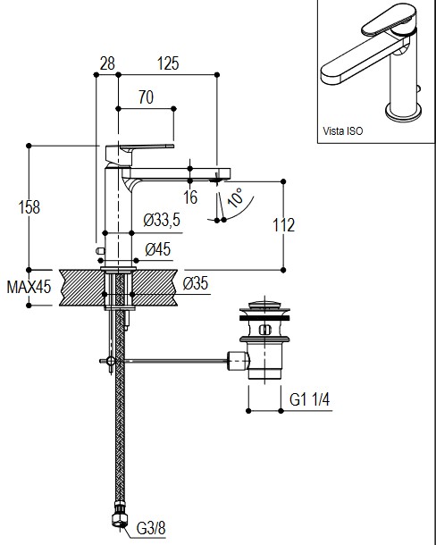 Ritmonio Tip Bateria umywalkowa jednootworowa z korkiem automatycznym chrom PR38AA101CRL
