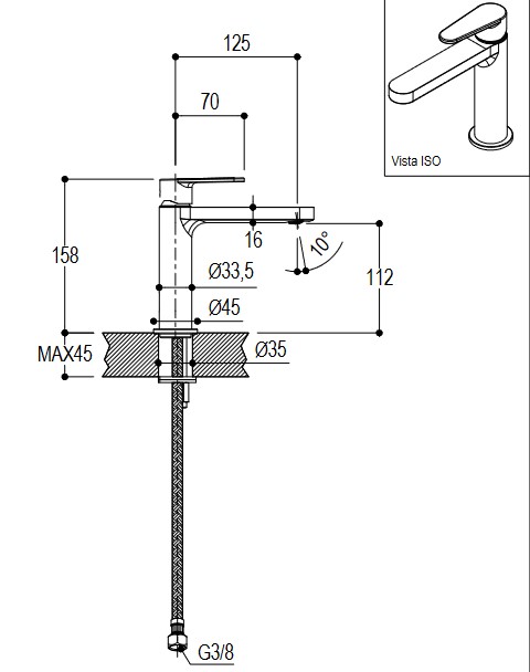 Ritmonio Tip Bateria umywalkowa 1-otworowa bez korka automatycznego chrom PR38AA201CRL