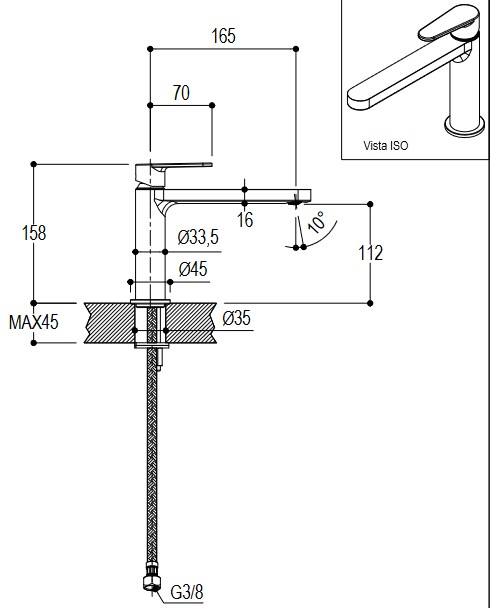 Ritmonio Tip Bateria umywalkowa 1-otworowa bez korka automatycznego chrom PR38AA202CRL