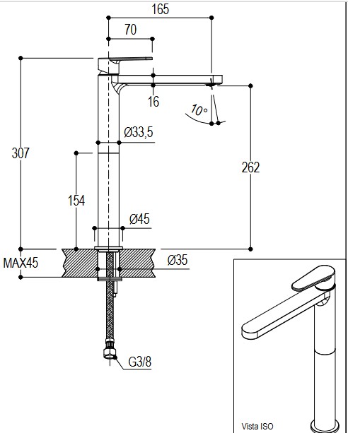 Wysokość wylewki: 262 mm