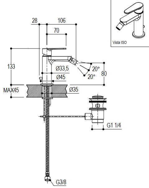 Ritmonio Tip Bateria bidetowa jednootworowa z korkiem automatycznym chrom PR38BA101CRL