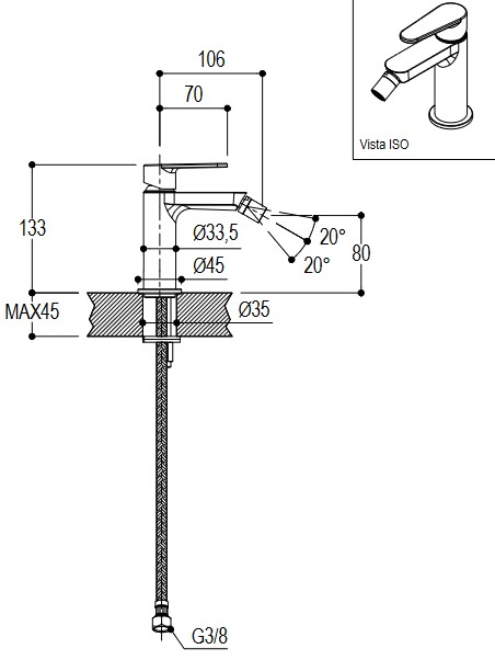 Ritmonio Tip Bateria bidetowa jednootworowa bez korka automatycznego chrom PR38BA201CRL