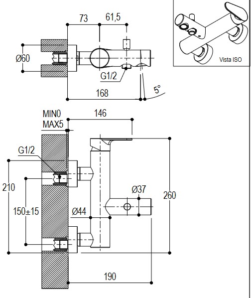 Ritmonio Tip Bateria wannowa ścienna chrom PR38EA201CRL