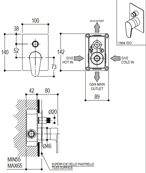 Ritmonio Tip Bateria wannowo/prysznicowa podtynkowa chrom PR38GC101CRL