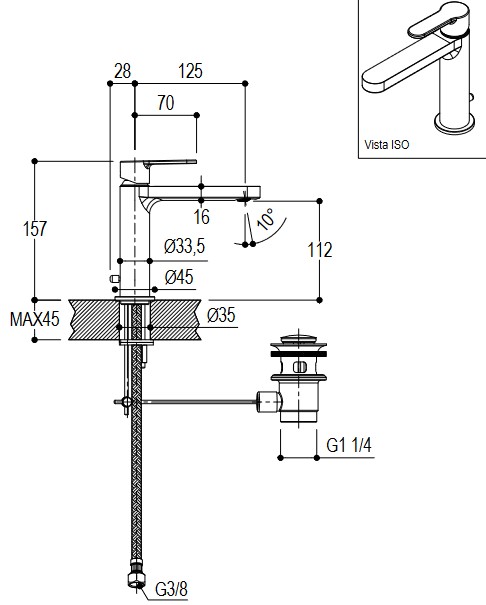 Ritmonio Tab Bateria umywalkowa jednootworowa z korkiem automatycznym chrom PR37AA101CRL