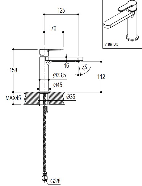 Ritmonio Tab Bateria umywalkowa 1-otworowa bez korka automatycznego chrom PR37AA201CRL