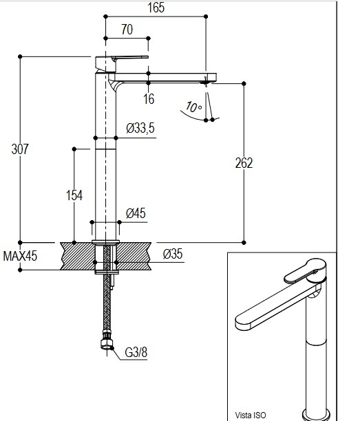 Ritmonio Tab Bateria umywalkowa 1-otworowa bez korka automatycznego chrom PR37AF201CRL