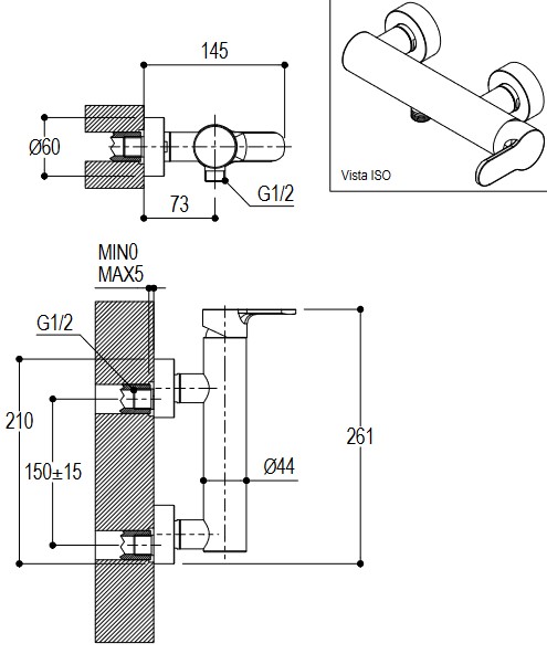 Ritmonio Tab Bateria prysznicowa ścienna chrom PR37FA201CRL