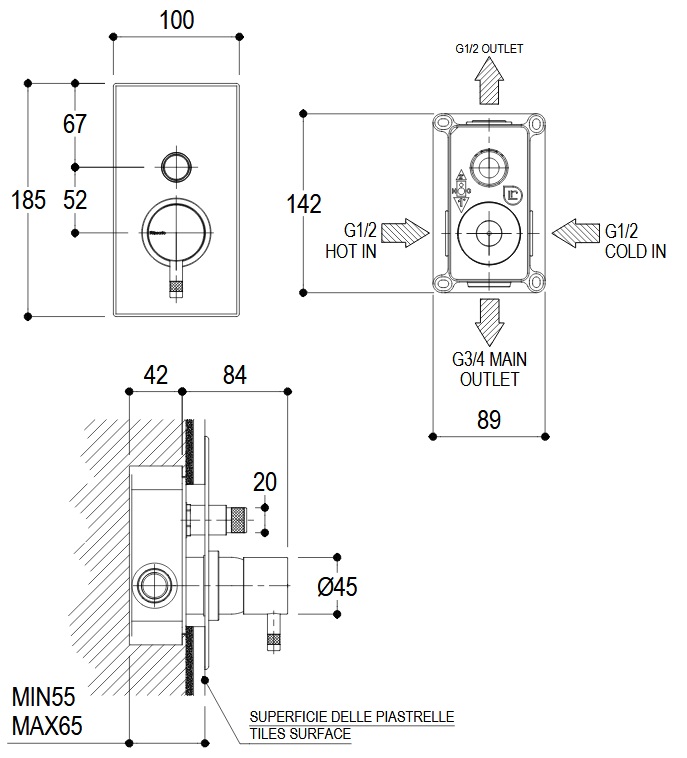Ritmonio Diametro35 Bateria wannowo-natryskowa podtynkowa biały E0BA0154C03