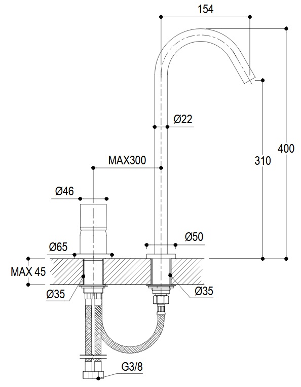 Ritmonio Diametro35 Concrete Bateria umywalkowa 2-otworowa inox E0BA0125H3ICM