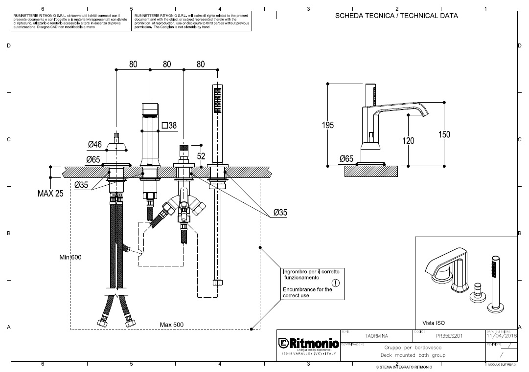 Ritmonio Taormina Zestaw wannowo-prysznicowy na brzeg wanny złoty PR35ES201GOX