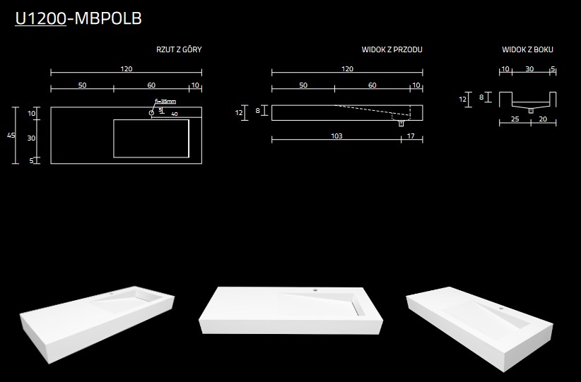Cristalstone Linea Ideal Umywalka ścienny biała U1200-MBPOLB