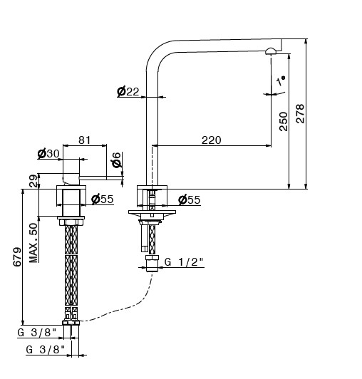 Newform N21 Bateria zlewozmywakowa jednouchwytowa 2-otworowa z obrotową wylewką chrom 71720.21.018