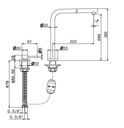 Newform N21 Bateria zlewozmywakowa jednouchwytowa 2-otworowa z obrotową i wyciąganą wylewką chrom 71725.21.018
