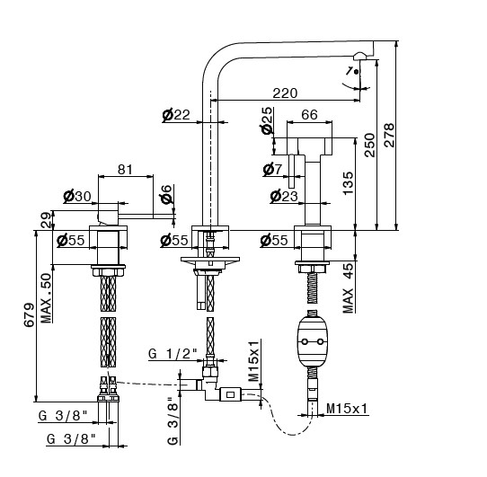 Wysokość wylewki: 25 cm