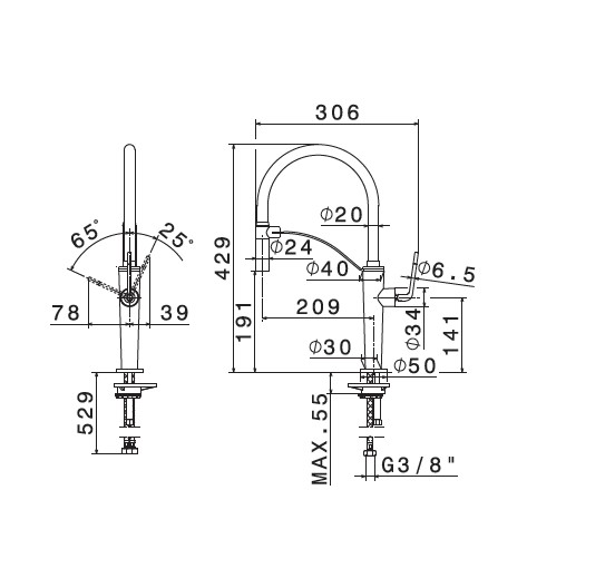 Newform O’Rama Bateria zlewozmywakowa jednouchwytowa z obrotową i regulowaną wylewką chrom/czarny mat 68730.05.093