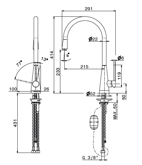 Newform Ycon Bateria zlewozmywakowa jednouchwytowa z obrotową i wyciąganą wylewką chrom 64215.21.018