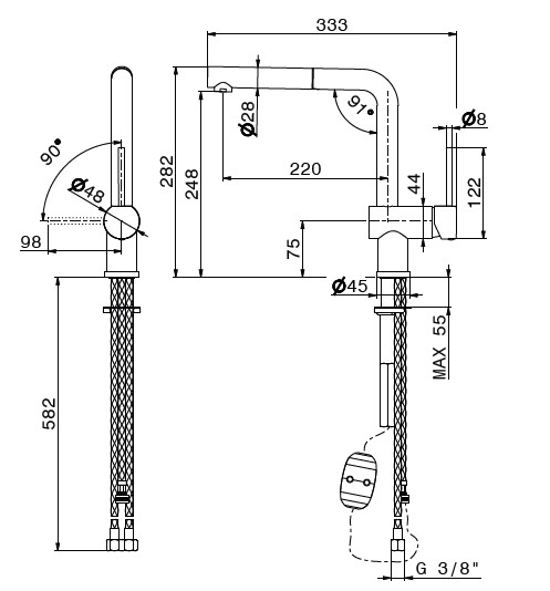 Newform Moony Bateria zlewozmywakowa jednouchwytowa z obrotową i wyciąganą wylewką chrom 3110.21.018