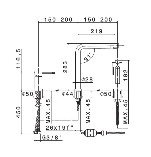 Newform Moony Bateria zlewozmywakowa 3-otworowa jednouchwytowa z obrotową wylewką chrom 3130.21.018