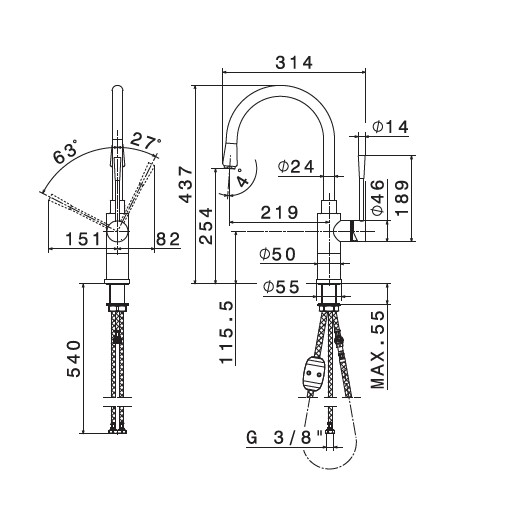 Wysokość wylewki: 25,4 cm