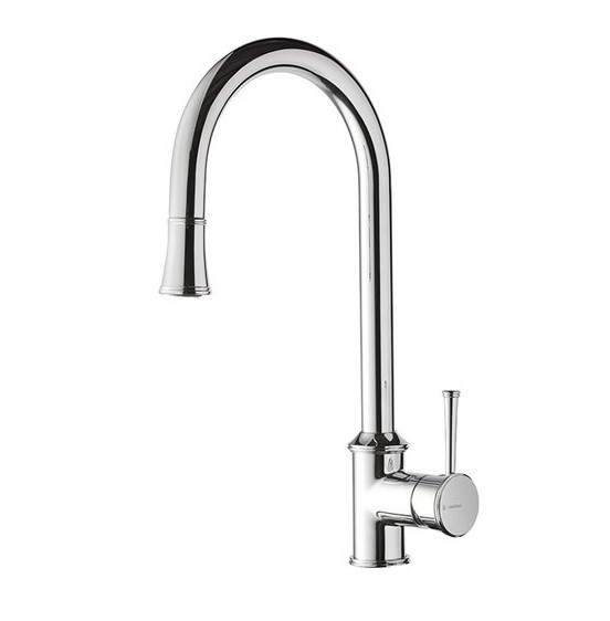 Newform Real Bateria zlewozmywakowa jednouchwytowa 2-strumienna z obrotową i wyciąganą wylewką chrom 63445.21.018